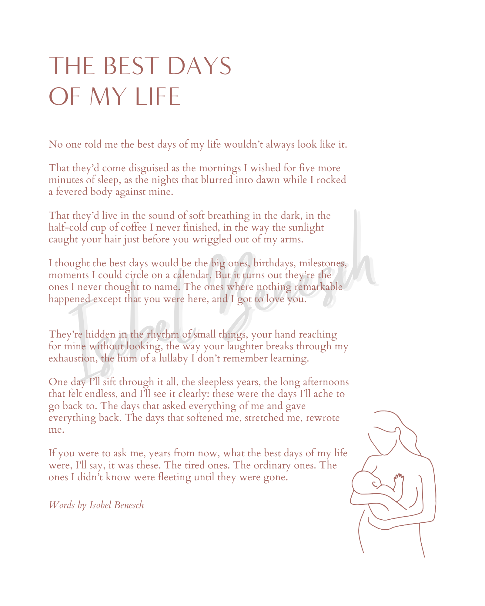 The Best Days of My Life - 8x10 Digital Download Printable Poem for Early Motherhood
